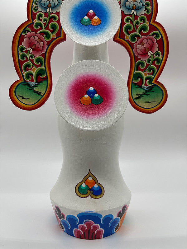 Traditionally utilized in ceremonies honoring Palden Lhamo, the Tibetan Buddhist protector goddess, is Cheppi Lhamo, a revered Tibetan butter sculpture. This offering, which is frequently used in rituals calling out gains for both spiritual and material achievement, represents divine protection and the removal of obstacles. The rich artistic legacy and profound cultural significance of Himalayan customs are reflected in its extensive layers and vivid decorations.