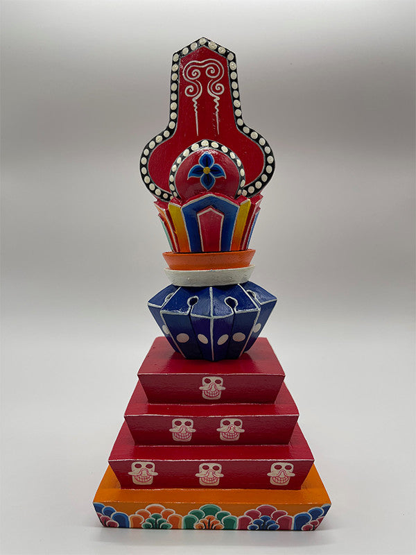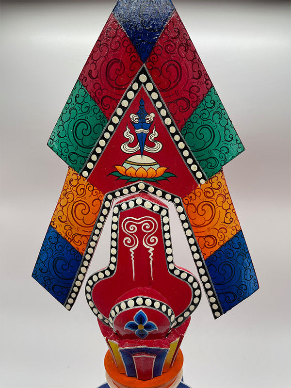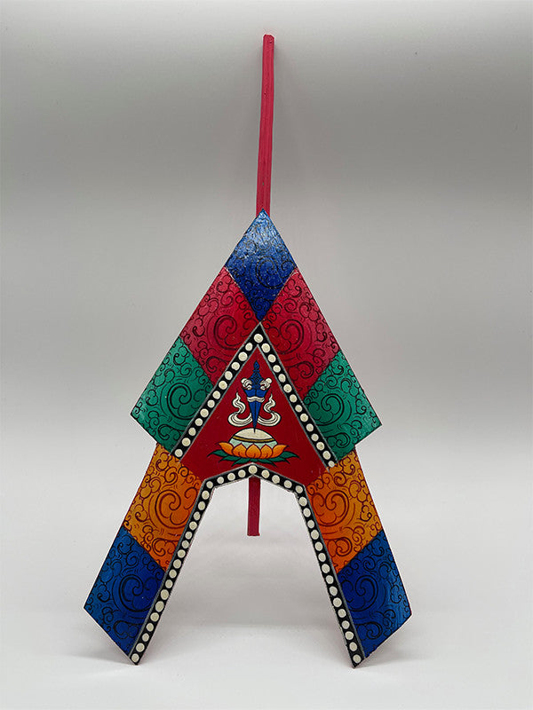 The Hidam, also known as the Bajra Kila, is a sacred ritual tool in Vajrayana Buddhism that symbolizes the Buddhas' enlightened activity. Handcrafted with elaborate motifs and brilliant hues, this relic symbolizes the ability to overcome challenges and purify negative energies. A profound work of spiritual art that embodies both tradition and craftsmanship.