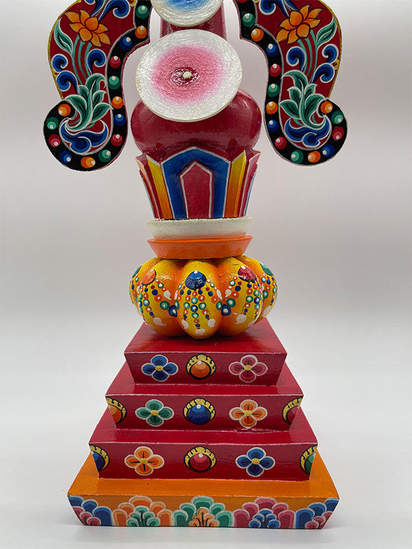 The Lama (Guru Torma) is a bright and artistically handcrafted Tibetan Buddhist offering that is often used in spiritual rituals and celebrations. It is decorated with detailed patterns and religious symbols and reflects devotion, creativity, and cultural heritage. This gorgeous work is a timeless manifestation of Buddhist craftsmanship, ideal for collectors and lovers of sacred art.