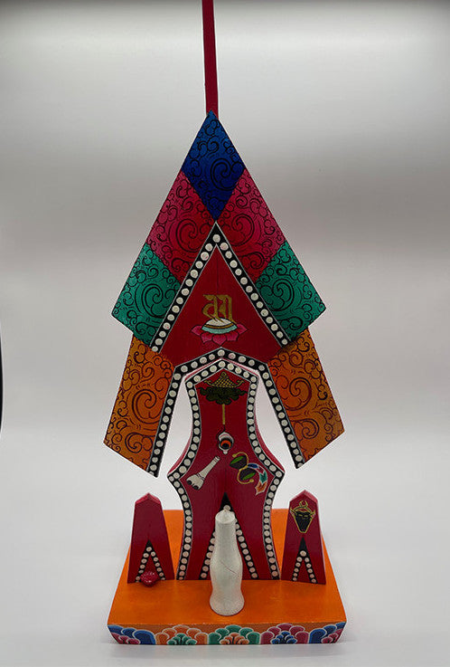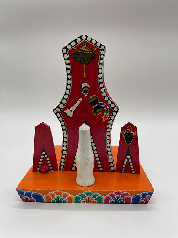 In Tibetan Buddhist rites, the Mamgon Torma is a sacred offering that is traditionally utilized to call forth protecting deities and drive out malicious spirits. It acts as a spiritual barrier against harm and is frequently included in rituals honoring guardian spirits. This artifact has profound meaning in Tibetan traditions and is crafted with symbolic features that stand for power and cleansing.