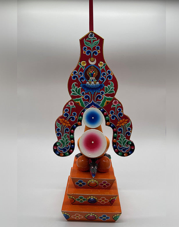 Ujin Norla, also known as Musa Torma, is a sacred offering in Tibetan Buddhist rituals, symbolizing prosperity and abundance. Traditionally associated with Dzambhala, the deity of wealth, this handcrafted artifact is used in ceremonies to attract blessings and remove financial obstacles. With its vibrant colors and intricate patterns, it embodies the essence of generosity and spiritual prosperity.